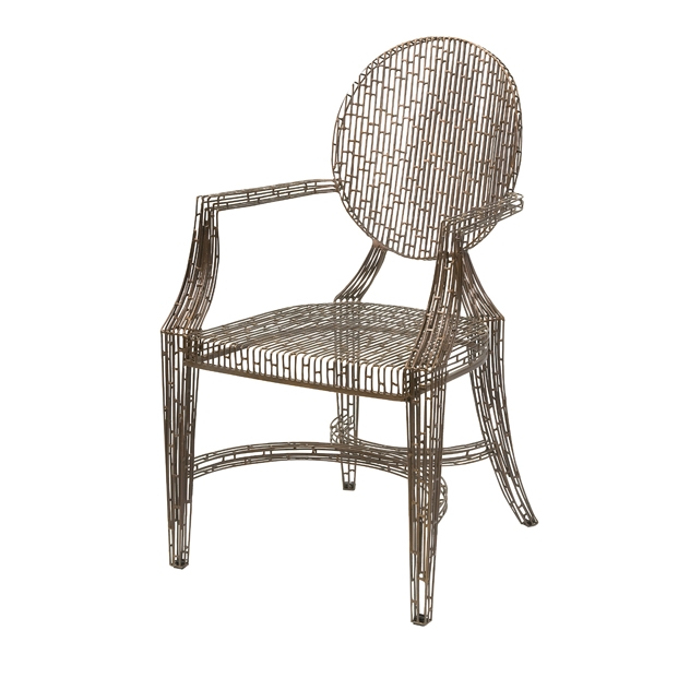 A wrought-iron arm chair updates Louisõ traditional silhouette with French flair
