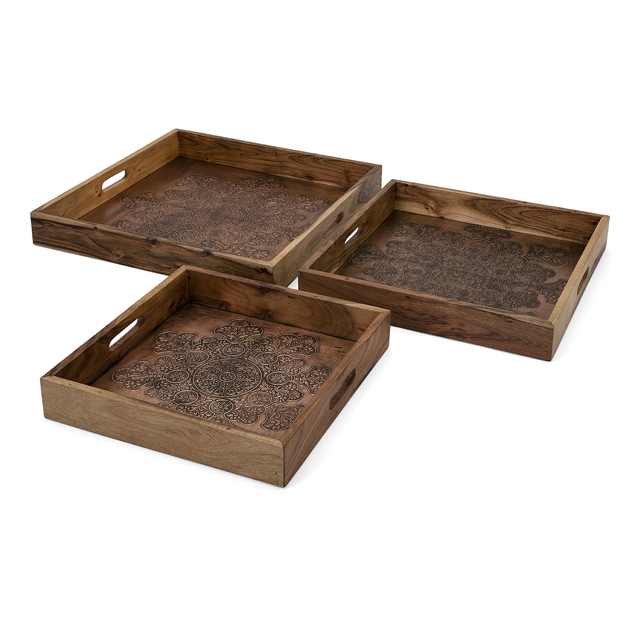 | IMAX 14261-3 Cecilia Copper Embossed Decorative Trays - Set of 3 |