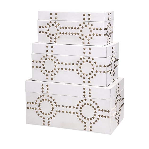 Designer Connie Post addresses the most challenging decorating issue of our day lack of adequate storage with a set of glamorous leather-look trunks bejeweled with gold studs arranged in a modern graphic pattern. Set of three Price: 161.10 ![]() |