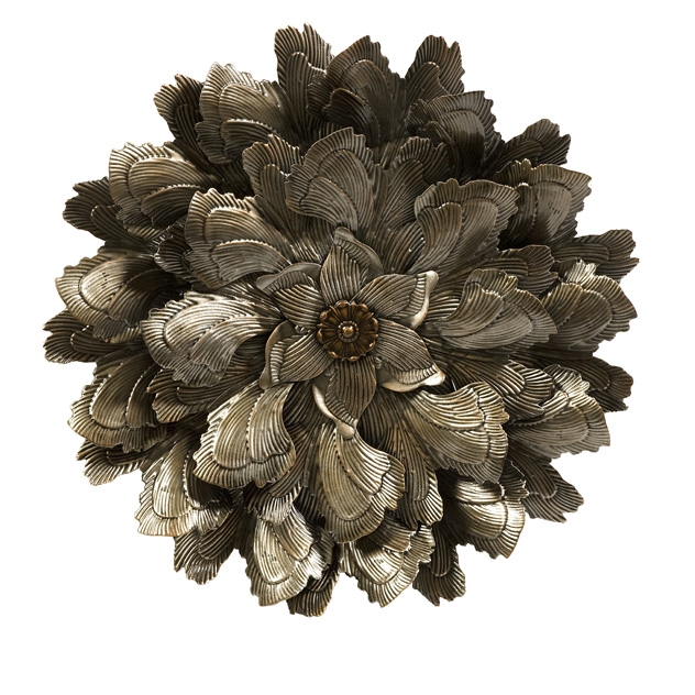 Cut and pressed metal to resemble the petals of a flower this Round Wall Piece will make a statement in any room. 70% Wrought Iron 30% Glass