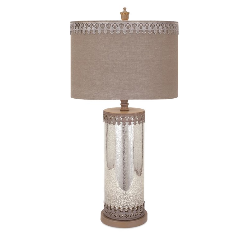 | IMAX Corporation - Table Lamps - 31431 - Simple and elegant, you will love this lamp from designer Becky Fletcher. The base is a mercury glass cylinder, trimmed with punched metal. The linen drum shade is also topped with the delicate punched metal trim, completing the look top to bottom. Add both style and comfort to your living space with this attractive collection. The subtle coloration of this lovely collection allows it to blend in easily with any color scheme or style of decor Finish: SilverMaterial: 55%Glass 30%Iron 15%LinenHand FinishedSpecifications:Overall Product Dimensions: 31.5 H x 15 W x 15 DOverall Product Weight: 3 lbs