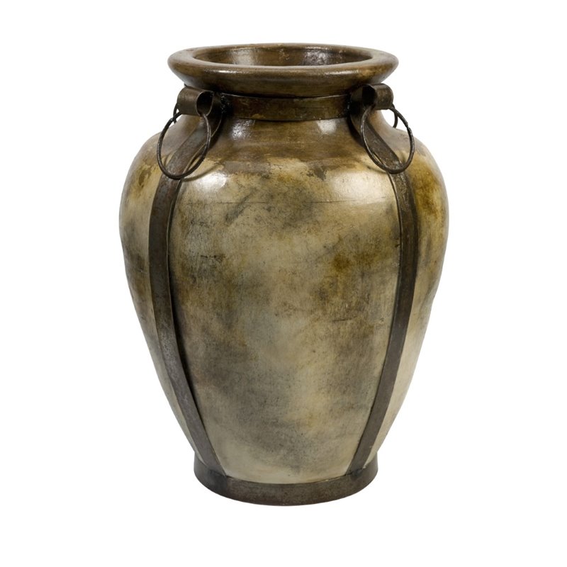 | IMAX Corporation - Flower Pots / Planters - 20121 - This beautiful oversized terracotta planter is accented with authentic iron details. Add both style and comfort to your living space with this attractive collection. The subtle coloration of this lovely collection allows it to blend in easily with any color scheme or style of decor Finish: BrownMaterial: 100% ClayHand FinishedSpecifications:Overall Product Dimensions: 29 H x 21 W x 21 DOverall Product Weight: 70 lbs