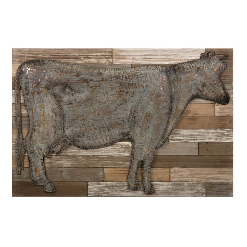| IMAX Corporation - Wall Panels / Plaques - 64434 - A distressed metal cow floats over a pallet wood inspired panel that will soon be your favorite farmhouse inspired wall piece. Add both style and comfort to your living space with this attractive collection. The subtle coloration of this lovely collection allows it to blend in easily with any color scheme or style of decor Finish: BrownMaterial: 60% Fir Wood, 40% IronHand FinishedSpecifications:Overall Product Dimensions: 26.5 H x 39.25 W x 1.5 DOverall Product Weight: 8 lbs