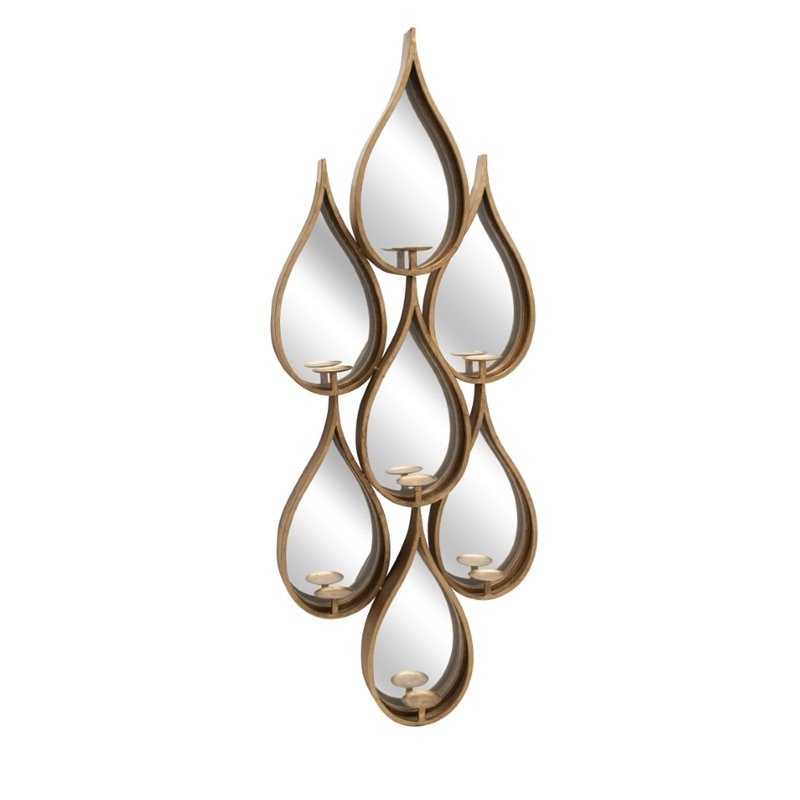 | IMAX Corporation - Candle Holders / Lanterns - 85432 - With a total of seven tealight candleholders and the beautiful multiple teardrop designed mirrors, this piece will add a touch of reflected elegance to any decor. Add both style and comfort to your living space with this attractive collection. The subtle coloration of this lovely collection allows it to blend in easily with any color scheme or style of decor Finish: GoldMaterial: 44.4% Glass, 39% Iron, 16.6% MdfHand FinishedSpecifications:Overall Product Dimensions: 52 H x 19 W x 5 DOverall Product Weight: 20 lbs