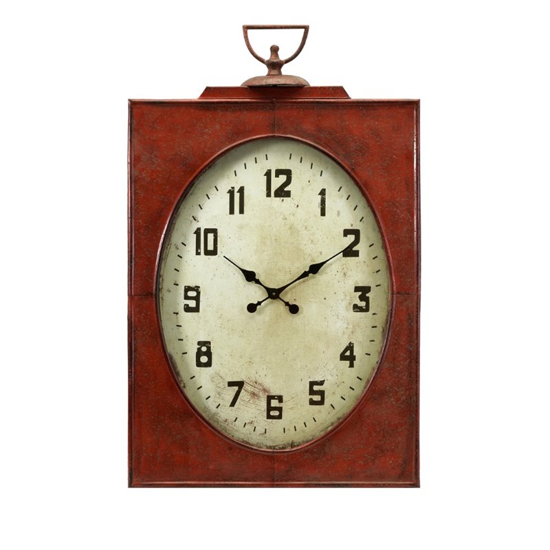 | IMAX Corporation - Wall Clocks - 47329 - The vintage charm of this provencial red wall clock is amplified in its allure due to its size. An excellent design choice, the Carnen oversized wall clock is sure to make a statement in your decor. Add both style and comfort to your living space with this attractive collection. The subtle coloration of this lovely collection allows it to blend in easily with any color scheme or style of decor Finish: RedMaterial: 60% Iron, 15% Glass, 15% Clock Components, 5% Paper, 5% MdfHand FinishedSpecifications:Overall Product Dimensions: 47 H x 28.5 W x 3.75 DOverall Product Weight: 21 lbs