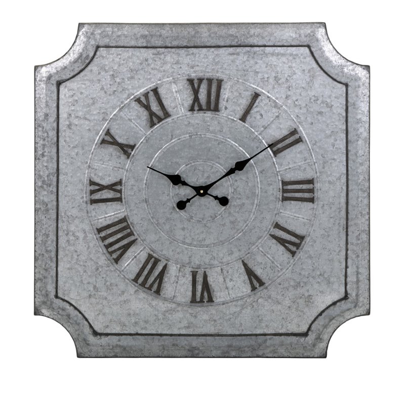 | IMAX Corporation - Wall Clocks - 14368 - Whether farmhouse or rustic, this galvanized metal wall clock features distressed roman numerals and tons of charm. Add both style and comfort to your living space with this attractive collection. The subtle coloration of this lovely collection allows it to blend in easily with any color scheme or style of decor Finish: SilverMaterial: 100% ZincHand FinishedSpecifications:Overall Product Dimensions: 32 H x 32 W x 2.25 DOverall Product Weight: 10 lbs