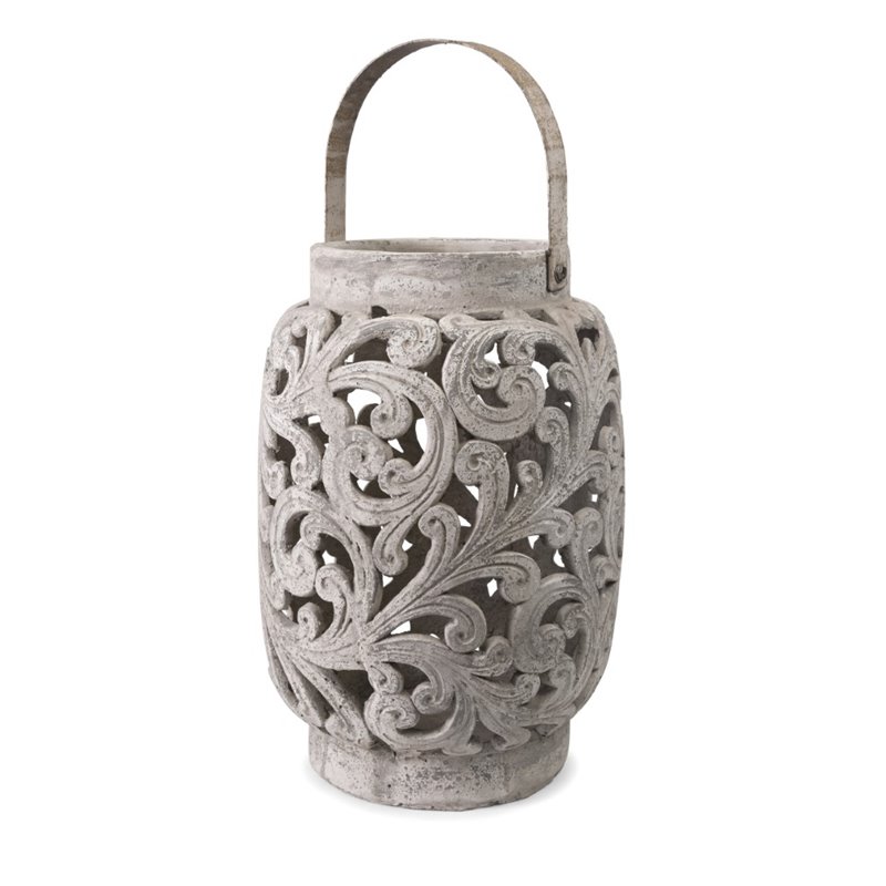 | IMAX Corporation - Candle Holders / Lanterns - 87909 - The Darby oversized cutwork lantern has a vintage finish and looks great with a variety of decor. Holds pillar candles. Add both style and comfort to your living space with this attractive collection. The subtle coloration of this lovely collection allows it to blend in easily with any color scheme or style of decor Finish: GrayMaterial: 100% PolyresinHand FinishedSpecifications:Overall Product Dimensions: 30.25 H x 14.5 W x 14.5 DOverall Product Weight: 36 lbs