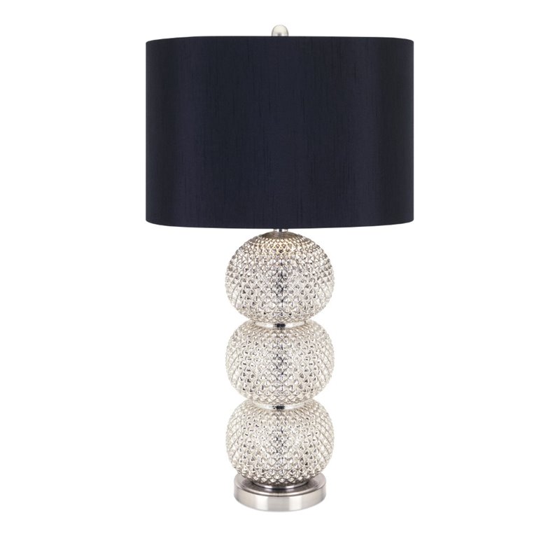 | IMAX Corporation - Table Lamps - 59250 - Light up your home with this classic, vintage style three-globe faceted glass and metal table lamp with a black silk drum shade. Add both style and comfort to your living space with this attractive collection. The subtle coloration of this lovely collection allows it to blend in easily with any color scheme or style of decor Finish: ClearMaterial: 60% Glass, 20% Silk, 20% IronHand FinishedSpecifications:Overall Product Dimensions: 33 H x 7.25 W x 7.25 DOverall Product Weight: 8 lbs