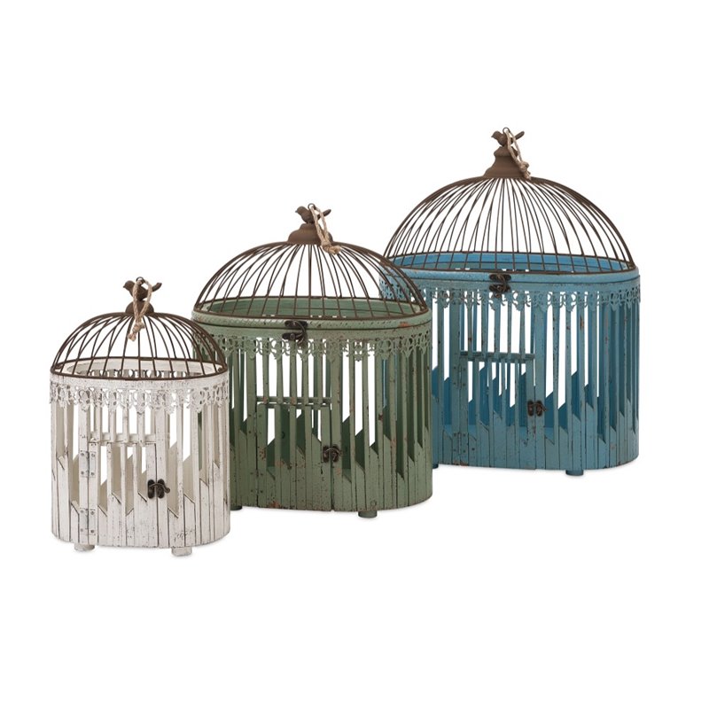 | IMAX Corporation - Statuettes / Figurines - 652663 - I know why the caged bird sings: A trio of pretty decorative birdhouses imbue a garden space with color and a sense of harmony. Add both style and comfort to your living space with this attractive collection. The subtle coloration of this lovely collection allows it to blend in easily with any color scheme or style of decor Finish: Multi-ColorMaterial: 75% Firwood, 15% Iron, 10% PlywoodHand FinishedSpecifications:Product Dimensions (Item 1): 15.25 H x 10.75 W x 6.87 DProduct Dimensions (Item 2): 19.25 H x 15.75 W x 9.87 DProduct Dimensions (Item 3): 24.25 H x 18.5 W x 12.62 DOverall Product Weight: 14 lbs