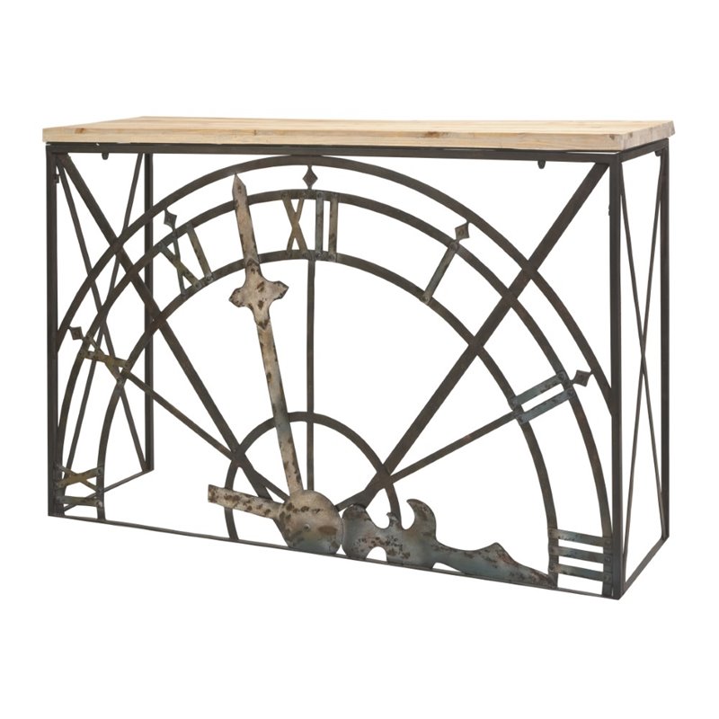 | IMAX Corporation - Console Tables - 74165 - Time for something different: Wrought iron and wood console table with a clock face motif. Add both style and comfort to your living space with this attractive collection. The subtle coloration of this lovely collection allows it to blend in easily with any color scheme or style of decor Finish: BrownMaterial: 60% Wrought Iron, 40% Fir WoodHand FinishedSpecifications:Overall Product Dimensions: 32.75 H x 51.75 W x 15.5 DOverall Product Weight: 36 lbs