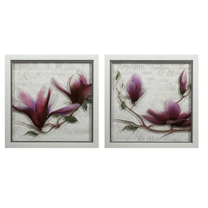 | IMAX Corporation - Prints / Paintings - A0282129 - Beautifully framed, the Juliette pair of art features printed pink magnolia branches on glass layered over a white textured damask pattern, giving a luxurious appeal. Add both style and comfort to your living space with this attractive collection. The subtle coloration of this lovely collection allows it to blend in easily with any color scheme or style of decor Finish: Multi-ColorMaterial: 60% Glass, 25% Ps Frame, 15% Mdf BoardHand FinishedSpecifications:Individual Product Dimensions: 27.75 H x 27.75 W x 2 DOverall Product Weight: 5 lbs