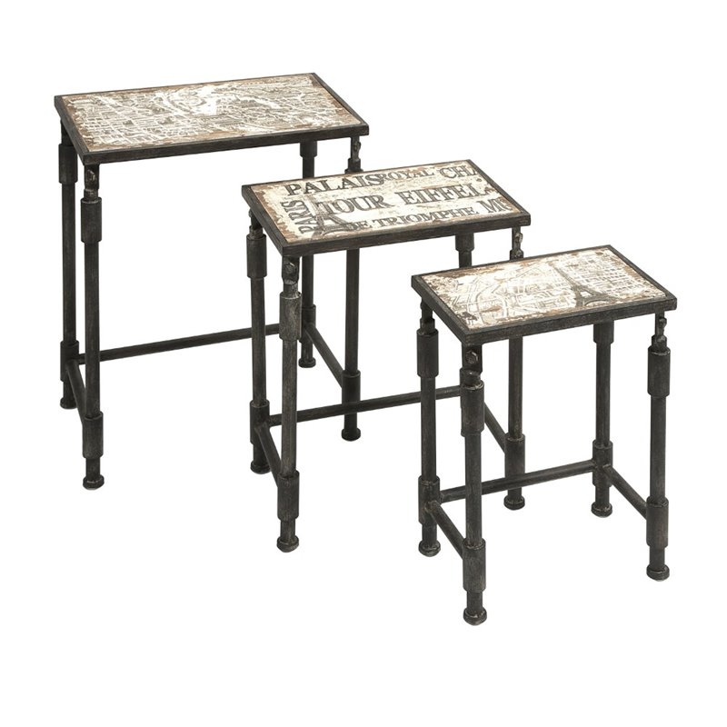 | IMAX Corporation - Nesting Tables - 972493 - Great for entertaining on a whim, this set of three Knoxlin nesting tables feature aged French inspired designs. Add both style and comfort to your living space with this attractive collection. The subtle coloration of this lovely collection allows it to blend in easily with any color scheme or style of decor Finish: BrownMaterial: 60% Iron, 40% FirHand FinishedSpecifications:Product Dimensions (Item 1): 18 H x 12.5 W x 8.25 DProduct Dimensions (Item 2): 20.25 H x 15.5 W x 10 DProduct Dimensions (Item 3): 23 H x 18 W x 12 DOverall Product Weight: 10 lbs