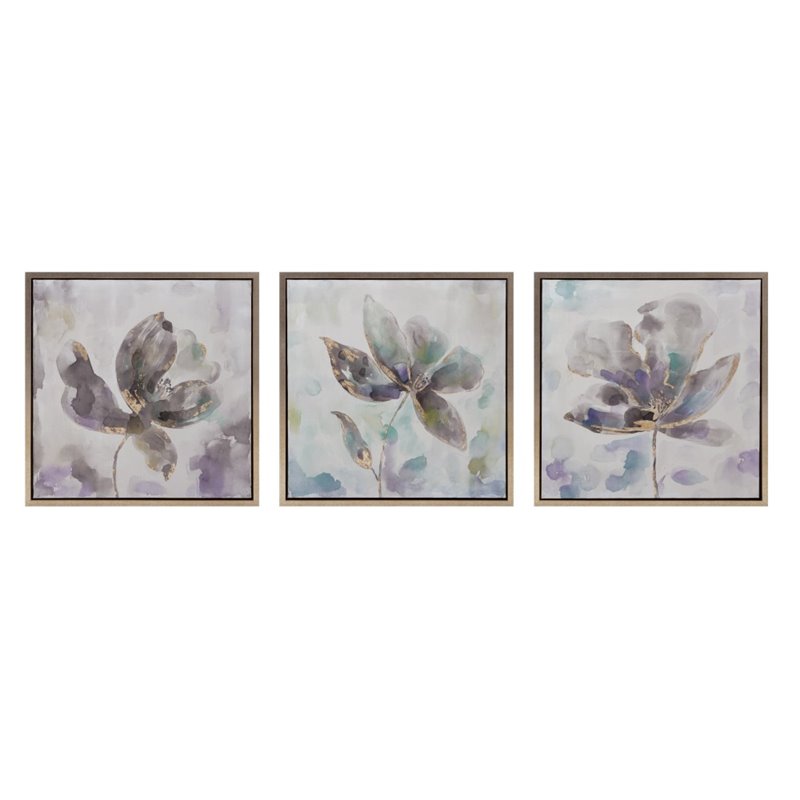 | IMAX Corporation - Prints / Paintings - A0376303 - This lovely trio of floral oil paintings in lavender, green and blue shades will add a romantic touch to your walls. Comes in a flaoting wood frame. Add both style and comfort to your living space with this attractive collection. The subtle coloration of this lovely collection allows it to blend in easily with any color scheme or style of decor Finish: Multi-ColorMaterial: 30% Ps Moulding, 20% Pinewood, 20%Canvas, 20%Oil,5%Paperboard, 5%Felt BackingHand FinishedSpecifications:Individual Product Dimensions: 24 H x 24 W x 1.5 DOverall Product Weight: 14 lbs