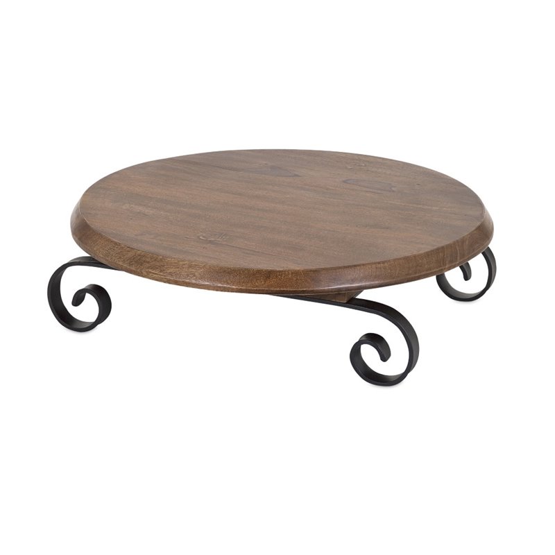 | IMAX Corporation - Serving / Decorative Trays - 86145 - No spin doctor necessary: This polished wood lazy Susan serving tray on wrought-iron legs is a smoothie who knows how to entertain in style. Add both style and comfort to your living space with this attractive collection. The subtle coloration of this lovely collection allows it to blend in easily with any color scheme or style of decor Finish: BrownMaterial: 50%Mango Wood, 50%IronHand FinishedSpecifications:Overall Product Dimensions: 6.75 H x 21.75 W x 21.75 DOverall Product Weight: 18 lbs