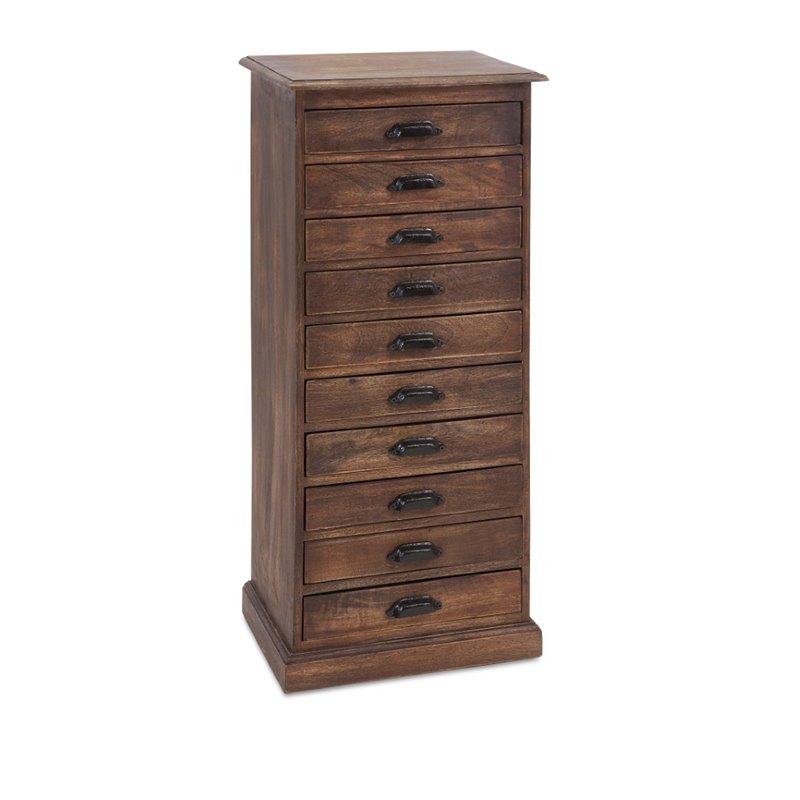 | IMAX Corporation - Accent Chests - 86107 - Take ten: Anyone in need of extra drawer space will appreciate this ten-drawer accent chest modeled after vintage document storage pieces in a distressed finish with a reclaimed feel. Add both style and comfort to your living space with this attractive collection. The subtle coloration of this lovely collection allows it to blend in easily with any color scheme or style of decor Finish: BrownMaterial: 85% Wood, 10% Mdf, 5% HardwareHand FinishedSpecifications:Overall Product Dimensions: 34 H x 15.5 W x 10.25 DOverall Product Weight: 33 lbs