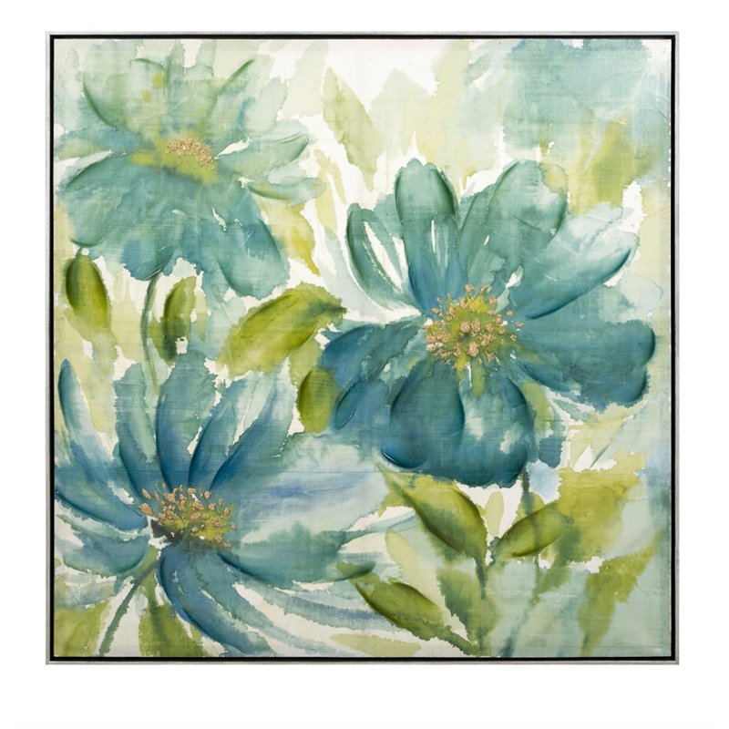 | IMAX Corporation - Prints / Paintings - 82207 - Resembling a fine watercolor, this floral depiction in blue and green oils will add artful style to any room. Features a floating frame. Add both style and comfort to your living space with this attractive collection. The subtle coloration of this lovely collection allows it to blend in easily with any color scheme or style of decor Finish: BlueMaterial: 45% Ps Frame, 40% Canvas, 15% MdfHand FinishedSpecifications:Overall Product Dimensions: 40.25 H x 40.25 W x 2.25 DOverall Product Weight: 18 lbs