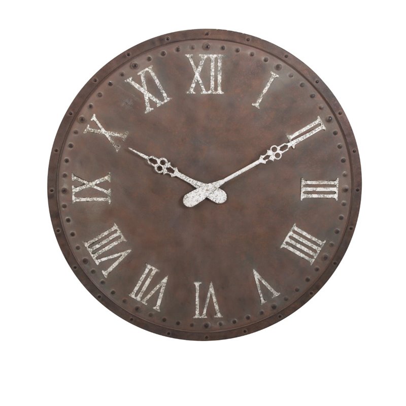 | IMAX Corporation - Wall Clocks - 30018 - Tell the time rustic style with this oversized metal wall clock in a weathered brown and white finish. Features a distinctive roman numeral dial. Add both style and comfort to your living space with this attractive collection. The subtle coloration of this lovely collection allows it to blend in easily with any color scheme or style of decor Finish: BrownMaterial: 100% IronHand FinishedSpecifications:Overall Product Dimensions: 45 H x 2 W x 2 DOverall Product Weight: 17 lbs