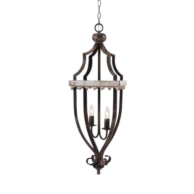 | IMAX Corporation - Pendant - 89364 - Light up your room with this shabby chic fir wood two-light pendant in a weathered brown and white finish. Add both style and comfort to your living space with this attractive collection. The subtle coloration of this lovely collection allows it to blend in easily with any color scheme or style of decor Finish: BrownMaterial: 90% Hard-Drawn Wire (Iron), 10% FirHand FinishedSpecifications:Overall Product Dimensions: 34.5 H x 11.25 W x 11.25 DOverall Product Weight: 7 lbs