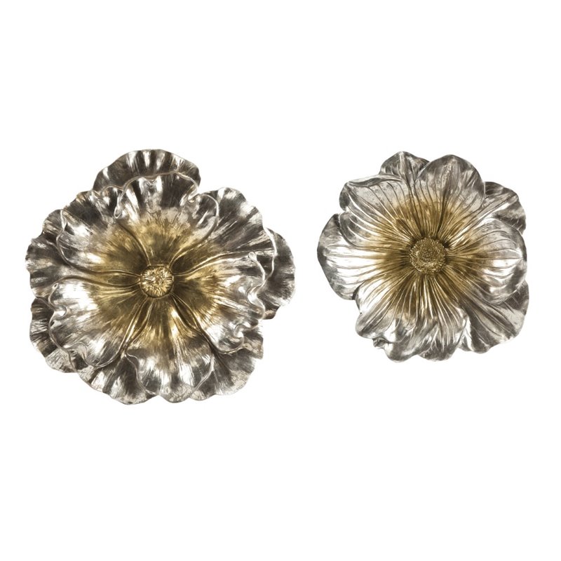 | IMAX Corporation - Small Accents - 530582 - This set of beautifully detailed silver flowers adds texture and depth to any room, making a dramatic statement whether as a wall hanging or on a table top. Add both style and comfort to your living space with this attractive collection. The subtle coloration of this lovely collection allows it to blend in easily with any color scheme or style of decor Finish: SilverMaterial: 100% PolyresinHand FinishedSpecifications:Product Dimensions (Item 1): 15 H x 15.5 W x 3.25 DProduct Dimensions (Item 2): 21.25 H x 20 W x 3 DOverall Product Weight: 6 lbs