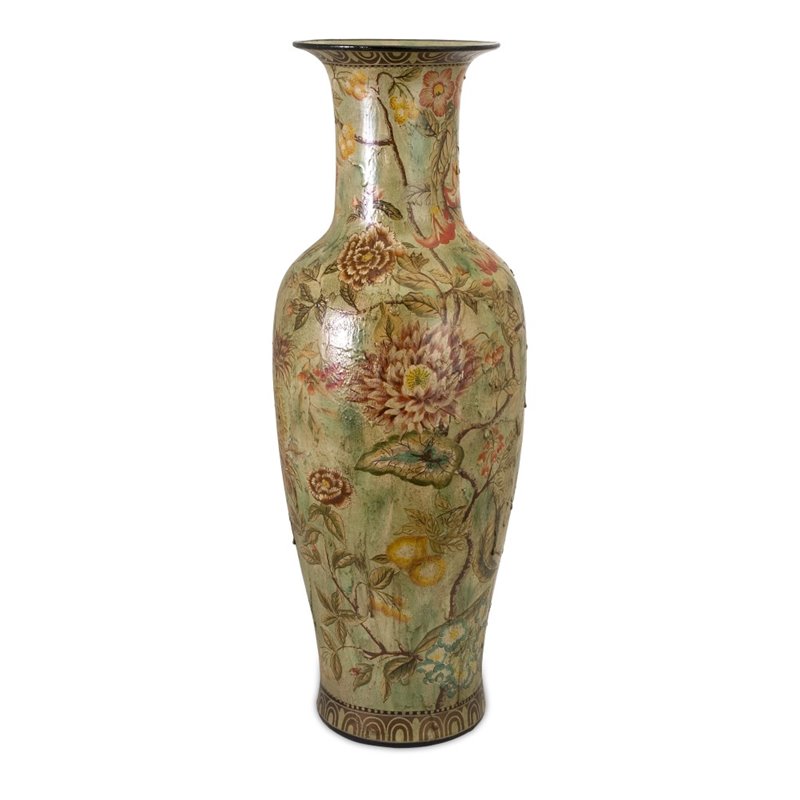 | IMAX Corporation - Vases / Urns - 19056 - Secrets abound in the Hargrove Vase, hidden among the tall grasses and the overgrown bittersweet hanging in ropes. Flowers abound in this warmly worn version of high society waiting to grace your home.Made of 100% PorcelainSpecifications:Overall Product Dimensions: 36 H x 13 W x 13 DTotal Weight: 25.3 lbs