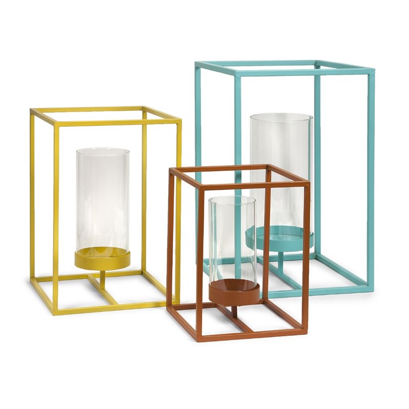 | IMAX Corporation - Candle Holders / Lanterns - 884443 - A modern use of positive and negative space, the Savona metal candle lanterns add striking color and modern flair to any space. Holds pillar candles. Add both style and comfort to your living space with this attractive collection. The subtle coloration of this lovely collection allows it to blend in easily with any color scheme or style of decor Finish: Multi-ColorMaterial: 70% Iron 30% GlassHand FinishedSpecifications:Product Dimensions (Item 1): 12 H x 9 W x 9 DProduct Dimensions (Item 2): 16 H x 11 W x 11 DProduct Dimensions (Item 3): 20 H x 13 W x 13 DOverall Product Weight: 13 lbs