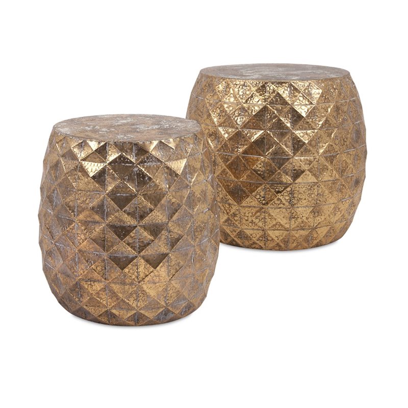 | IMAX Corporation - Ottomans - 142002 - Harkening back to ancient Chinese furniture making, these beautifully crafted modern garden stools marry beauty and function. Suitable for use inside the home, these stools make stylish side tables which can double as additional seating when needed. Add both style and comfort to your living space with this attractive collection. The subtle coloration of this lovely collection allows it to blend in easily with any color scheme or style of decor Finish: GoldMaterial: 100% IronHand FinishedSpecifications:Product Dimensions (Item 1): 16.25 H x 16.25 W x 16.25 DProduct Dimensions (Item 2): 20.25 H x 20.25 W x 20.25 DOverall Product Weight: 16 lbs