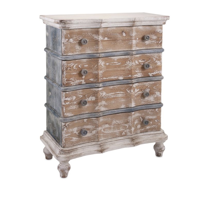 | IMAX Corporation - Accent Chests - 89365 - Store your jewelry and clothing in this period-look Fir wood four-drawer cabinet with a nod to French Country style in a weathered cream and blue finish. Add both style and comfort to your living space with this attractive collection. The subtle coloration of this lovely collection allows it to blend in easily with any color scheme or style of decor Finish: BrownMaterial: 98% Fir, 10% MdfHand FinishedSpecifications:Overall Product Dimensions: 35.75 H x 26.5 W x 13.5 DOverall Product Weight: 50 lbs