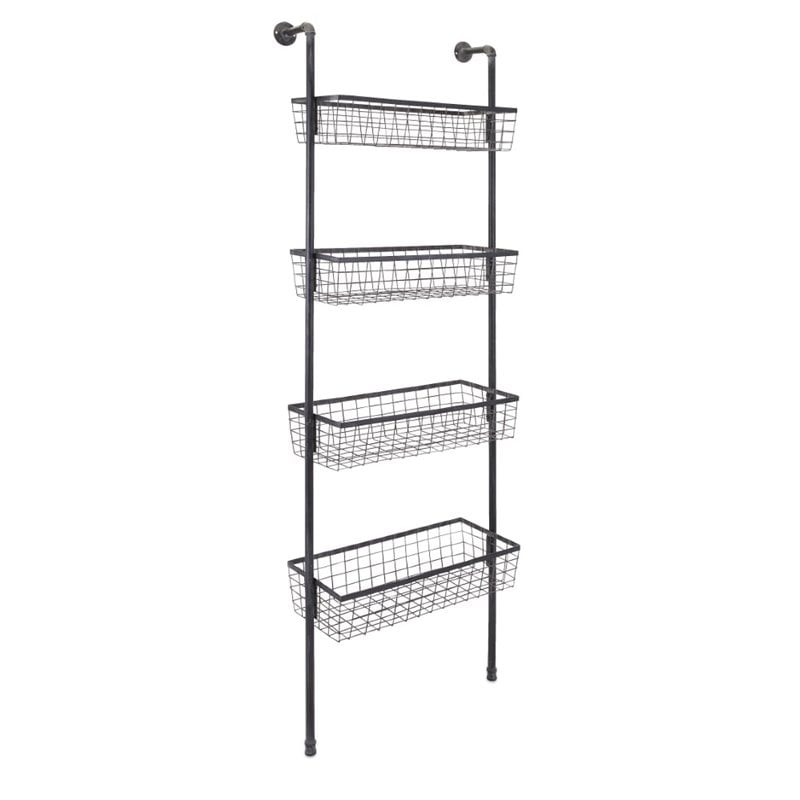 | IMAX Corporation - Storage Bins - 65324 - This industrial style four-basket shelf features the look of metal piping and wire baskets, great for added storage and style. Add both style and comfort to your living space with this attractive collection. The subtle coloration of this lovely collection allows it to blend in easily with any color scheme or style of decor Finish: BlackMaterial: 100% IronHand FinishedSpecifications:Overall Product Dimensions: 76.5 H x 25.25 W x 10.25 DOverall Product Weight: 16 lbs
